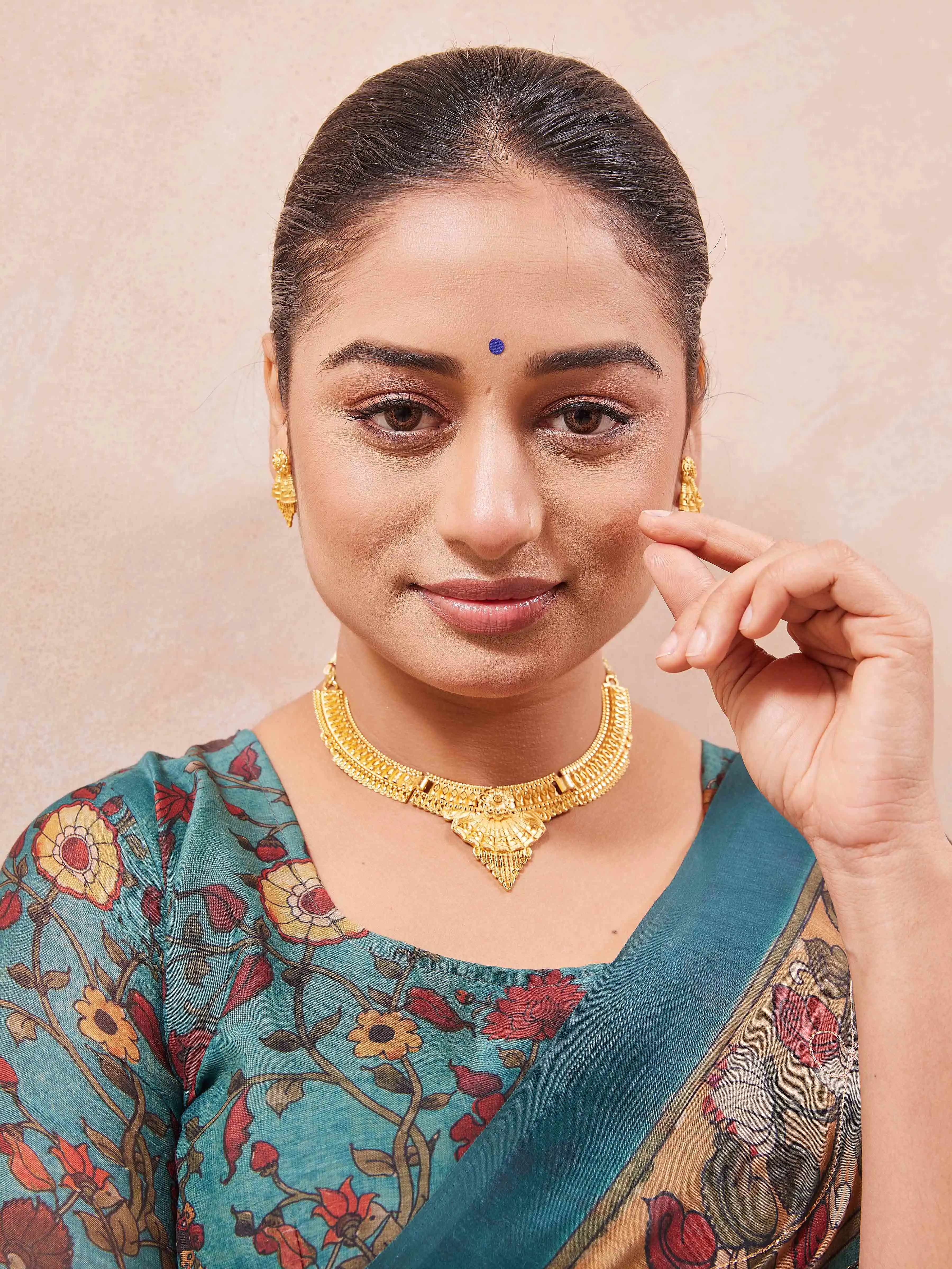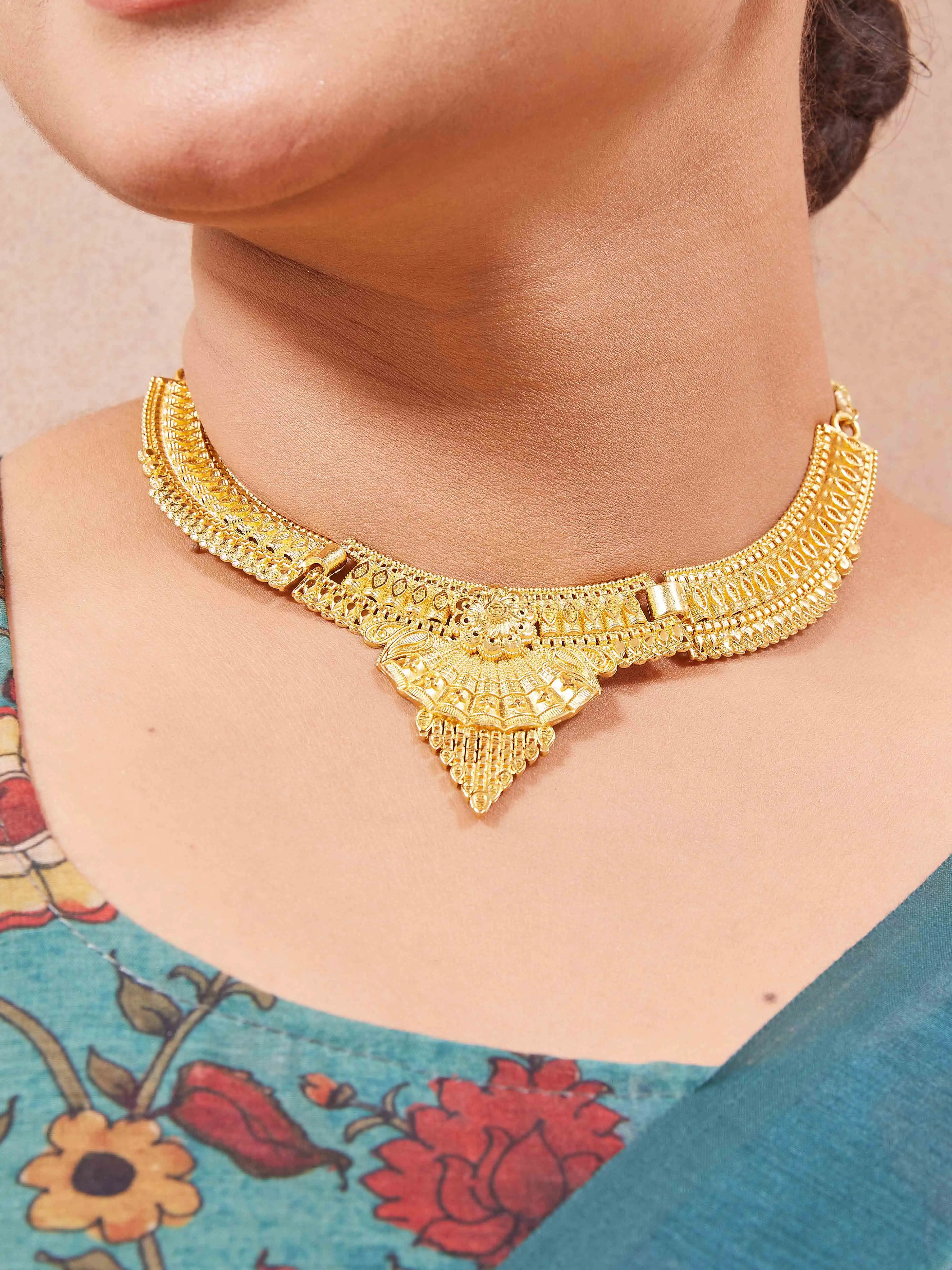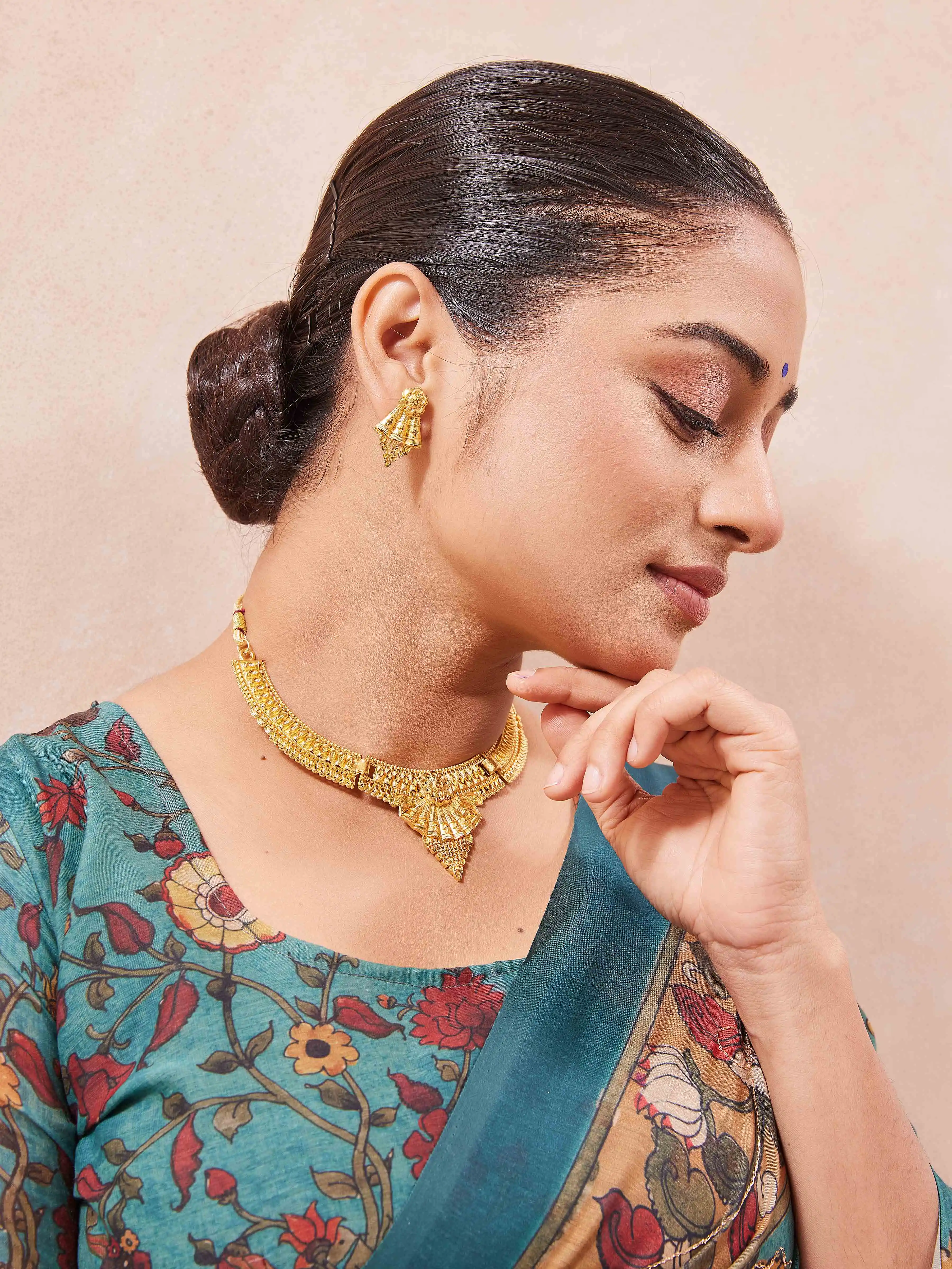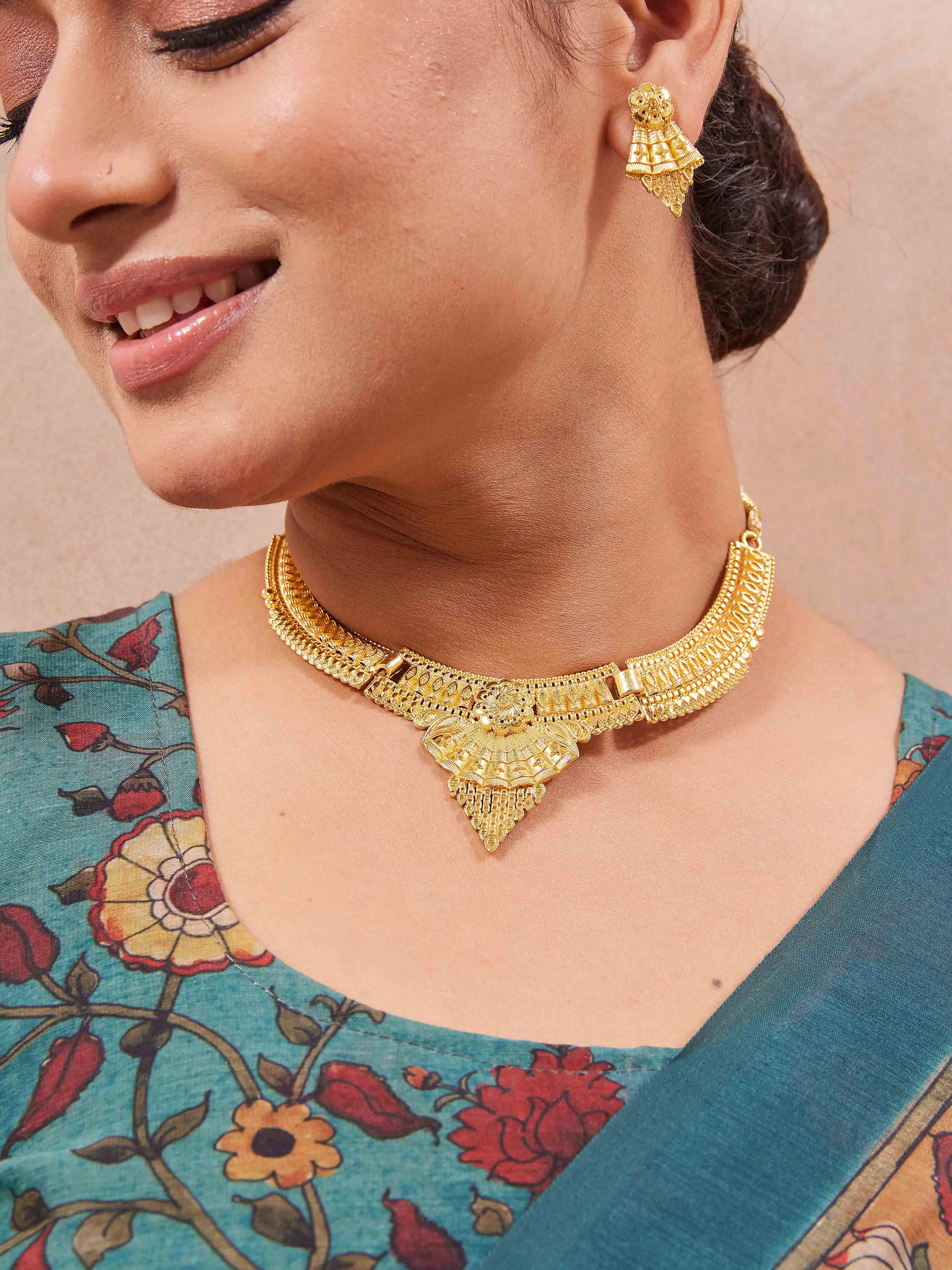 Traditional Gold-Plated Necklace Set with Earrings